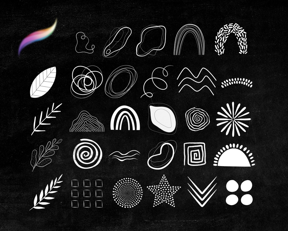 52 abstract shapes to create modern designs in iOS app Procreate.